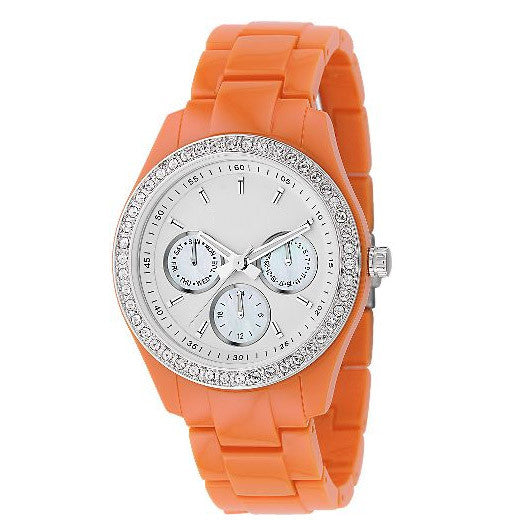 Nothing says style like the combination of fake diamonds with brightly colored plastic. Introducing the new Plastic Line from Ego Watch. In Lemon, Orange, White & Pink.